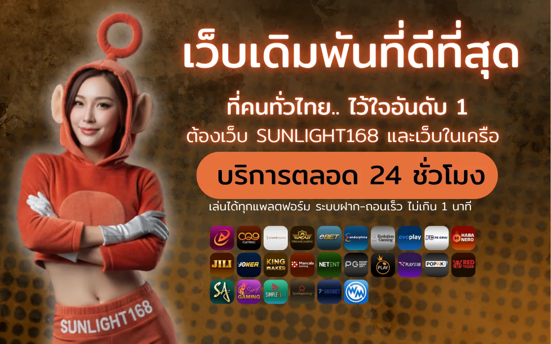ถึงเวลาเริ่มต้นความสนุกกับ SUNLIGHT168 เว็บตรงที่จริงใจและโปร่งใสที่สุด คลิก สมัครสมาชิก เพื่อรับเครดิตฟรีและโปรต้อนรับ หรือหากเป็นสมาชิกแล้วกด เข้าสู่ระบบ เพื่อเข้าเล่นทันที